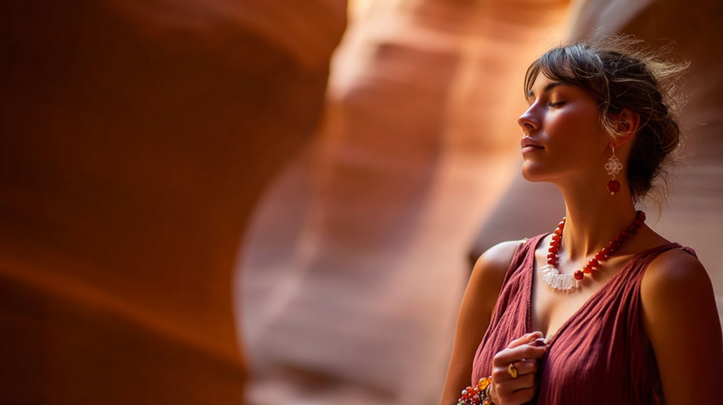 Sedona Glow Bracelet - Red Agate, Clear Quartz, and Hand-blown Red Glass Diffuser Bead