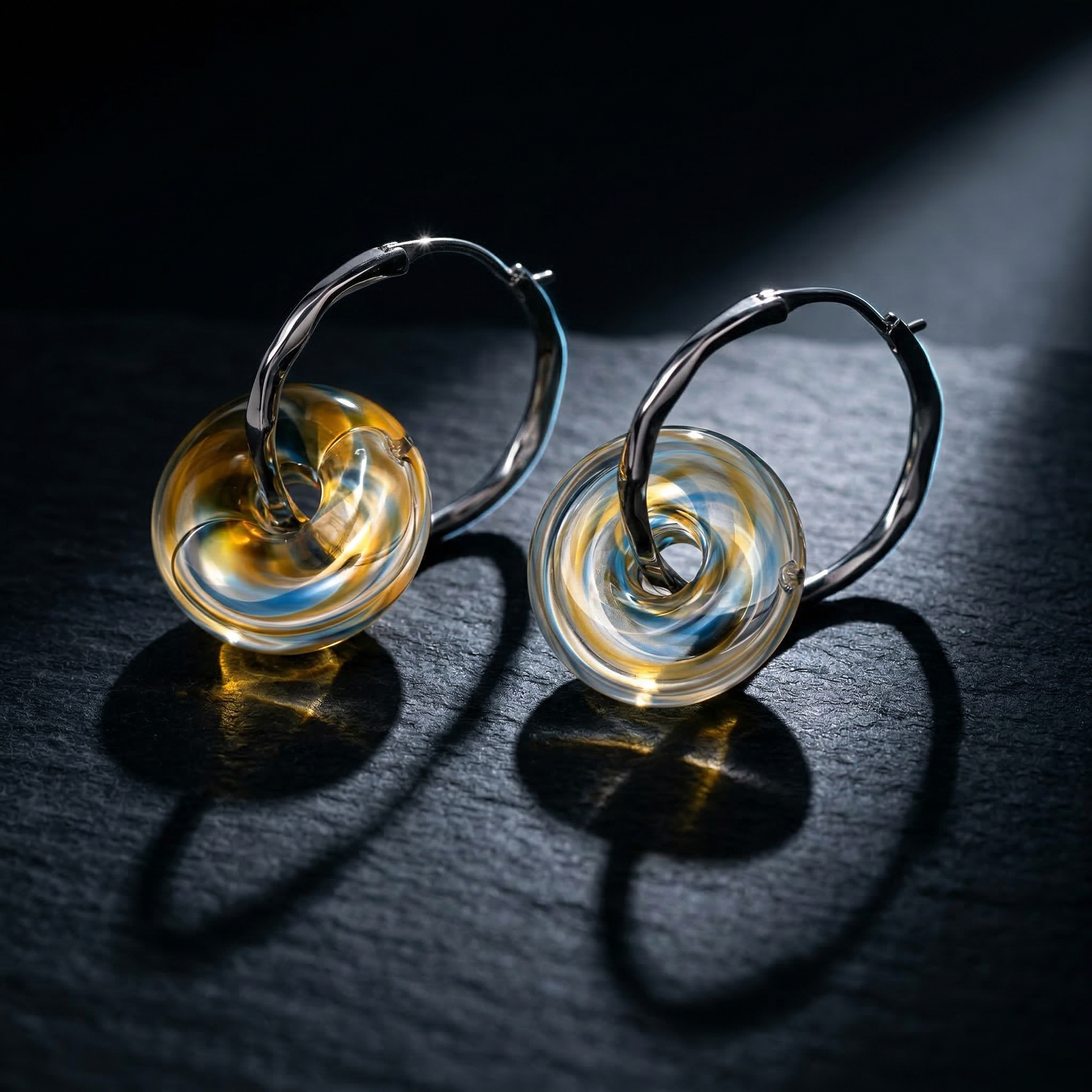 AuraDrop 是一對精緻的可穿戴芳香療法耳環,專為承載幾滴精油而設計。每一顆手工吹製的玻璃香珠,都會隨著體溫與身體的輕微動作,緩緩釋放香氣,在你周圍形成一層若有若無的香氛氣場,伴隨整日。